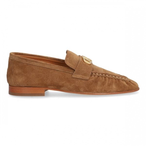 Mocasín para mujer ALPE BELIZE fabricado en piel (baby silk) de color marrón con tacón de 1,5 cm, suela antideslizante y puntera cuadrada, sin cierre .