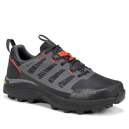 Suela Vibram® Megagrip que proporciona amortiguación y gran adherencia y tecnología Vibram® Traction Lug que mejora la tracción con sus novedosos tacos