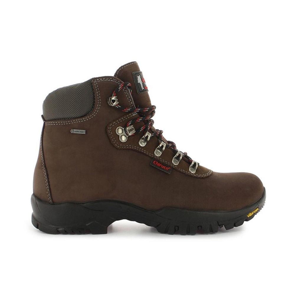 Piel nobuck hidrofugada. Cordura® hidrorrepelente. Forro GORE-TEX® Performance Comfort. Suela de caucho Vibram® Fusion CNR. Peso: 700 g.