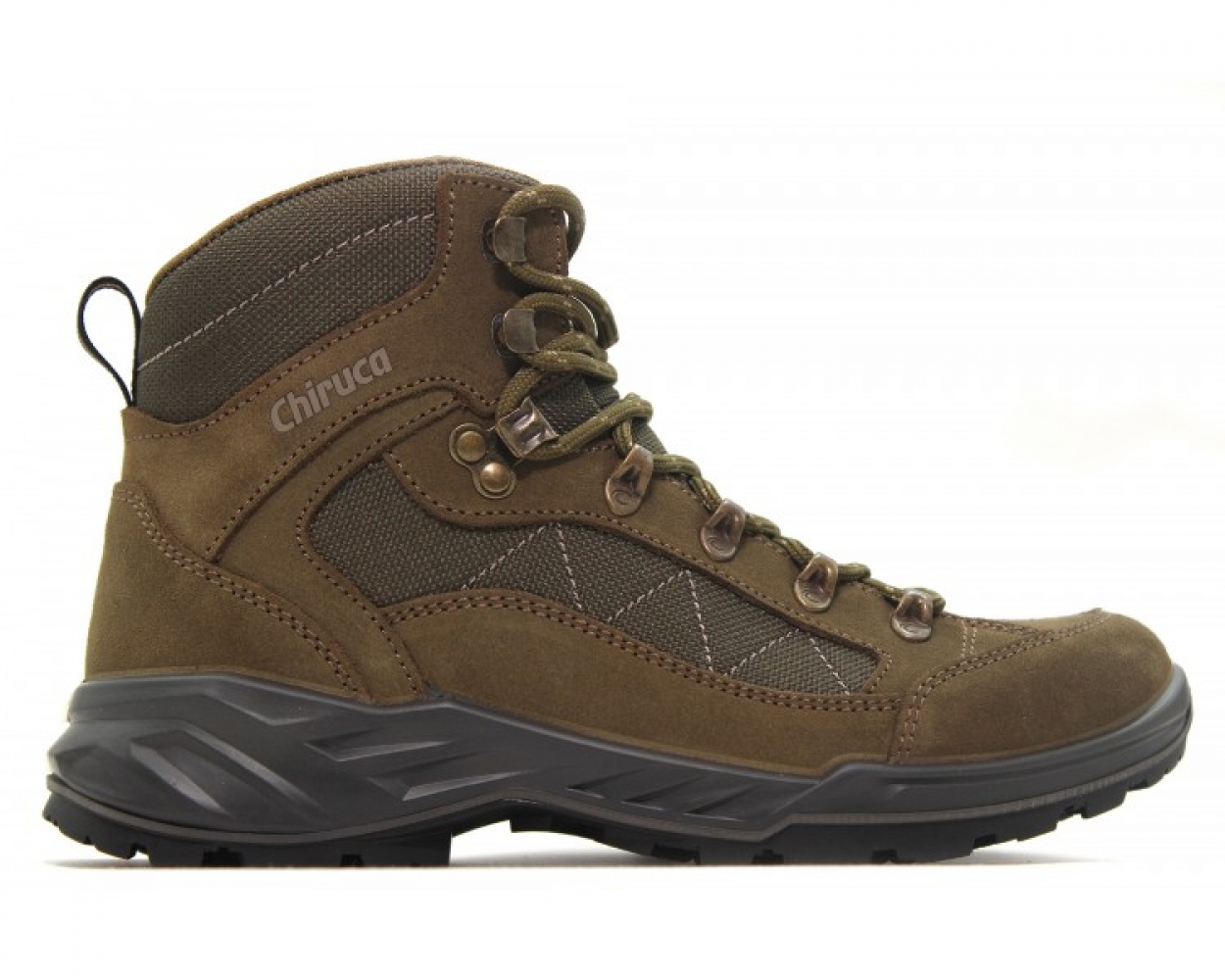 Botas de montaña y trekking Unisex Chiruca Sabueso 01 verde Modelo aconsejado para caza menor y senderismo Adecuadas para terrenos poco accidentados Elaboradas en piel de serraje Cordura® hidrorrepelente Forro Drïtex Piso de poliuretano bidensidad Hawk Cierre mediante cordones Tirador trasero para un calce más cómodo Peso: 508 gramos