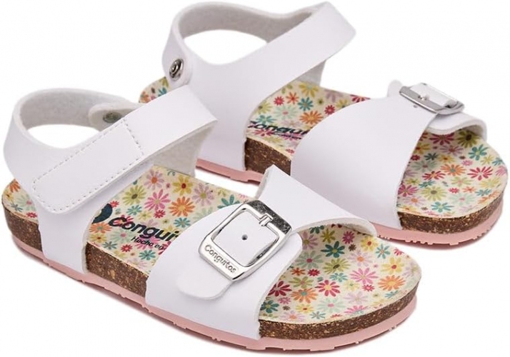 Cómodas sandalias ecológicas con diseño de correa, ideales para los días tranquilos de verano. Características principales: * Cierre adherente para un ajuste fácil * * Plataforma plana para mayor comodidad en el día a día. * * Diseño de correas que mantienen los piececitos cómodamente en su sitio. * * Detalle de hebilla en las correas * * Fabricado en España *Estas sandalias ecológicas con hebilla blanca están diseñadas para el uso diario, cuando los piececitos no paran quietos