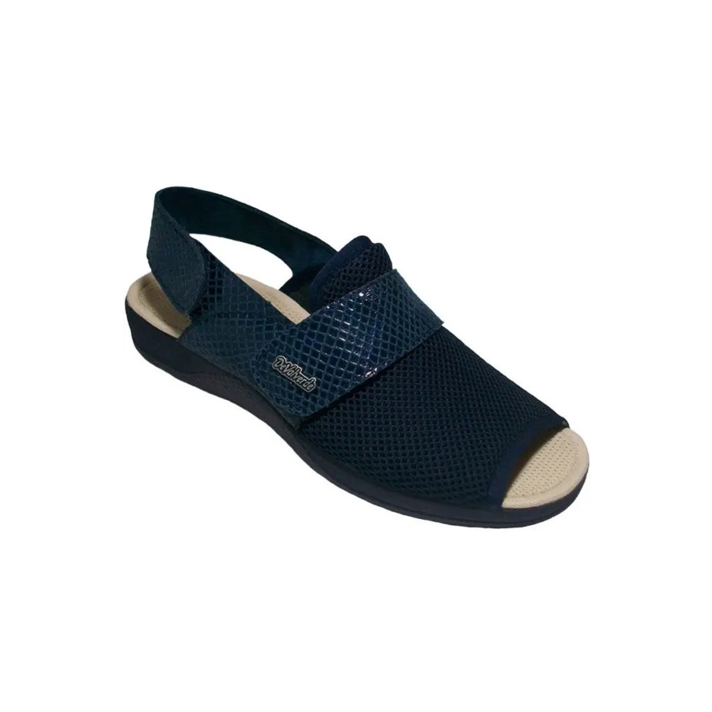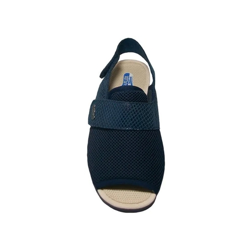 Zapatillas de estar en casa de mujer modelo 1511 en color azul marino print con dos cierres de velcro. Chinela ideal para el verano por sus tejidos de fibra y algodón que permite la transpiración. Fabricado en España.