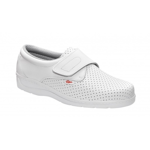 Zapatos unisex sanitario modelo 1900 color marino de la marca Dian. Con cierre de velcro. Piel de microfibra técnica con forro transpirable. Plantilla acolchada de  de poliuretano con tratamiento antibacterias y carbón activado. Suela en forma de cuña.