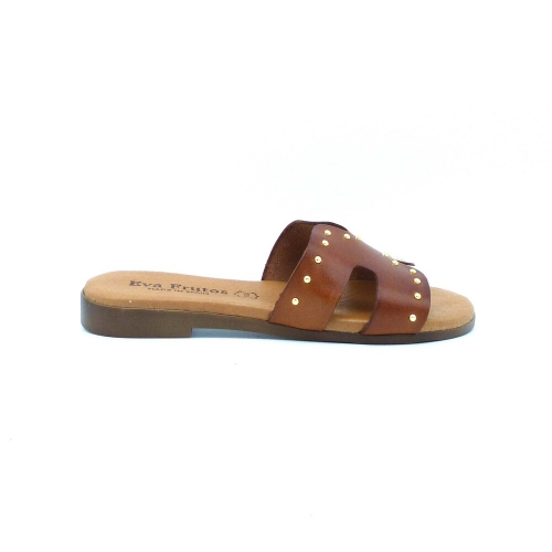 Cómoda sandalia plana en color cuero con tachuelas de Eva Frutos. Un esencial para esta primavera y verano.