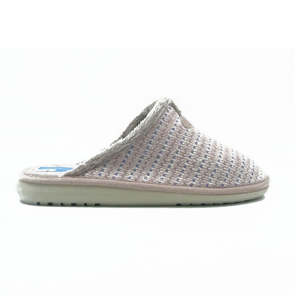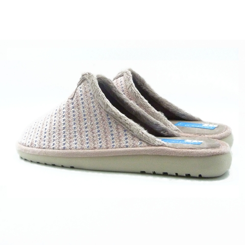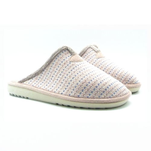 Zapatillas de casa abiertas para mujer fabricadas en España. Tejido muy agradable y calentito. Suela de caucho antideslizante