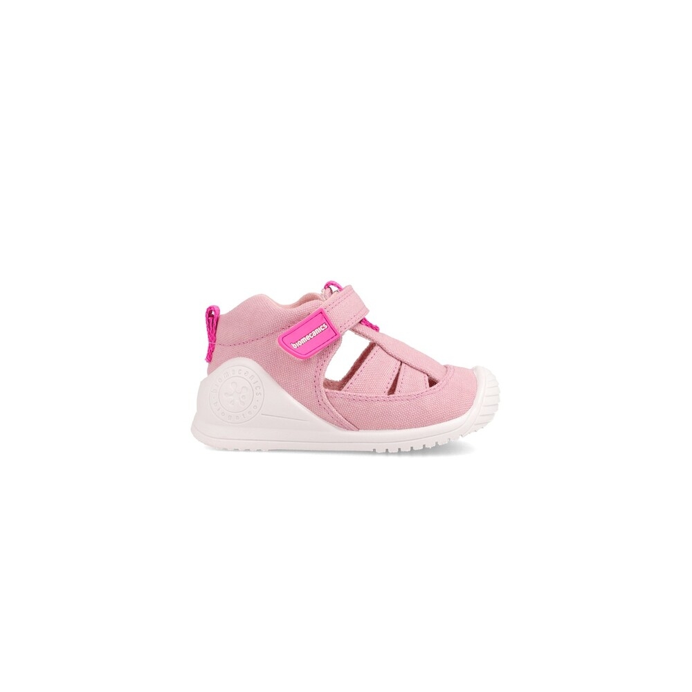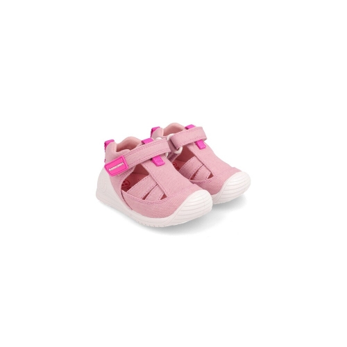Cangrejeras de lona para bebé modelo 202202 en color rosa de Garvalín. Calzado con lona 100% algodón que son resistentes, ligeras y suaves. Son perfectas para calzar este verano.