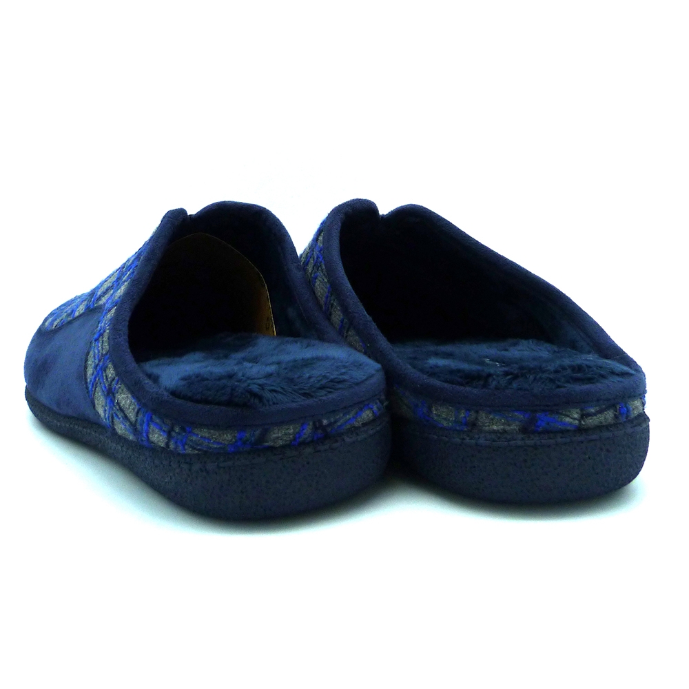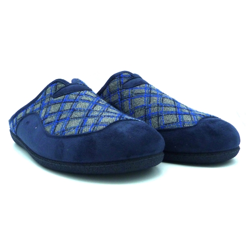 Zapatillas abiertas de estar en casa de hombre en color marino y maya de rombos. Una zapatilla cómoda para tus momentos de tranquilidad en casa.