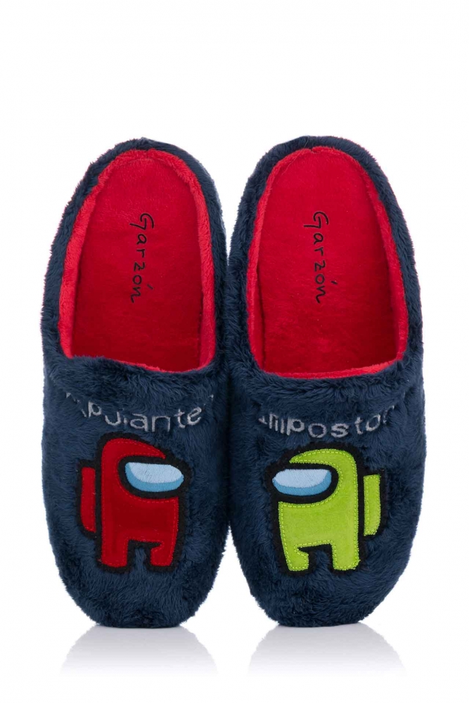 Zapatillas de estar en casa niños modelo 4721 Among Us en color azul marino de Garzón. Estas divertidas zapatillas inspiradas en el popular videojuego Among Us hará las delicias de los más pequeños. Zapatillas de talón abierto con suave y cálido tejido y duela de goma antideslizante. Descubre al impostor con estas zapatillas tan chulas!