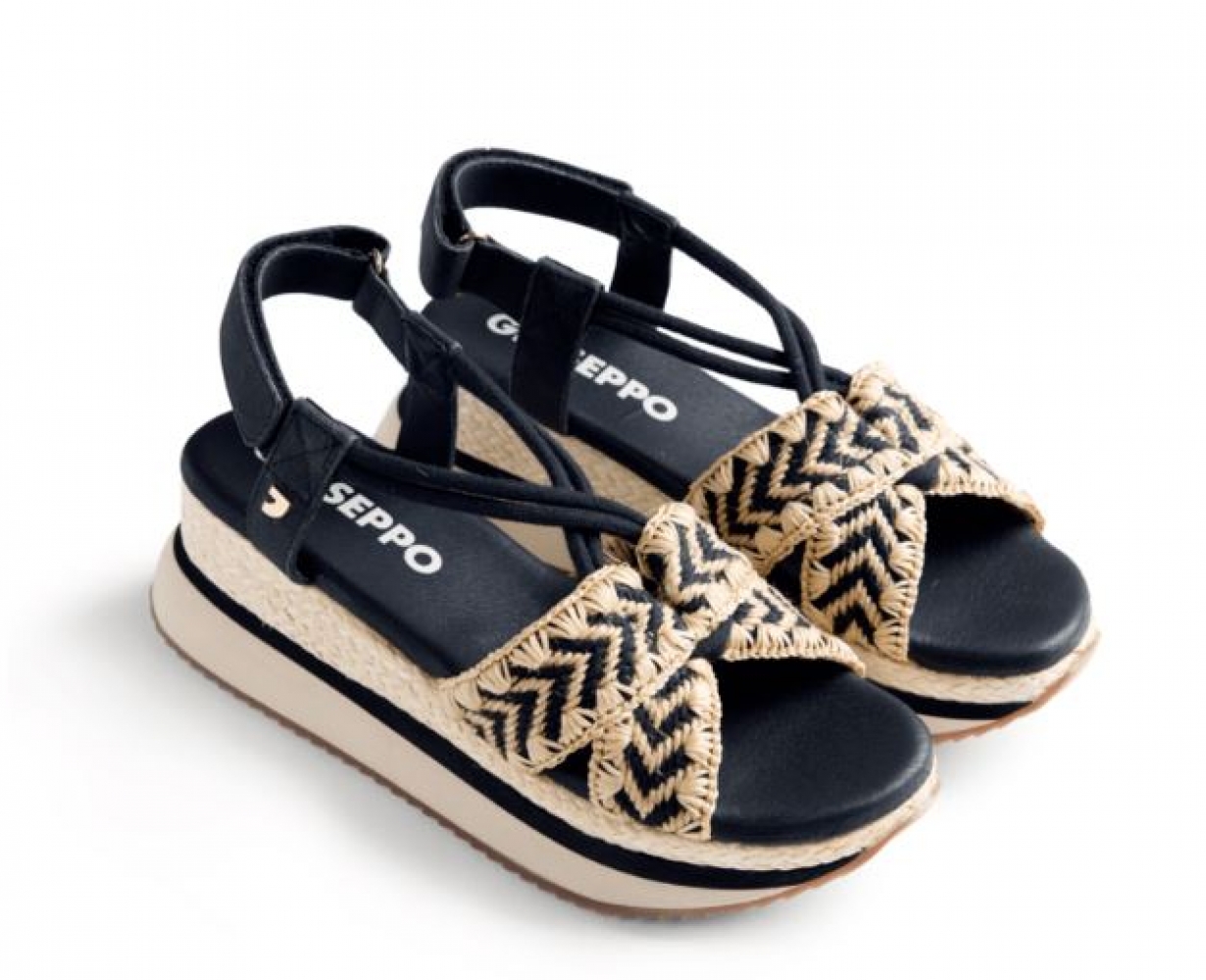 Sandalias con bordado bicolor y cuña forrada