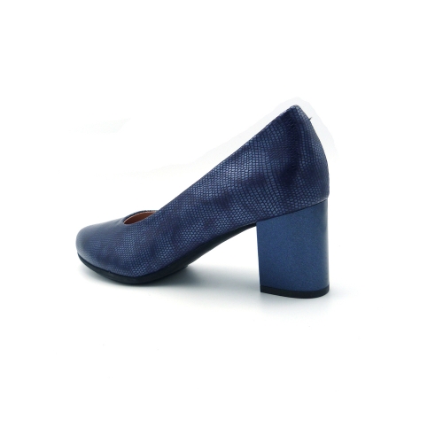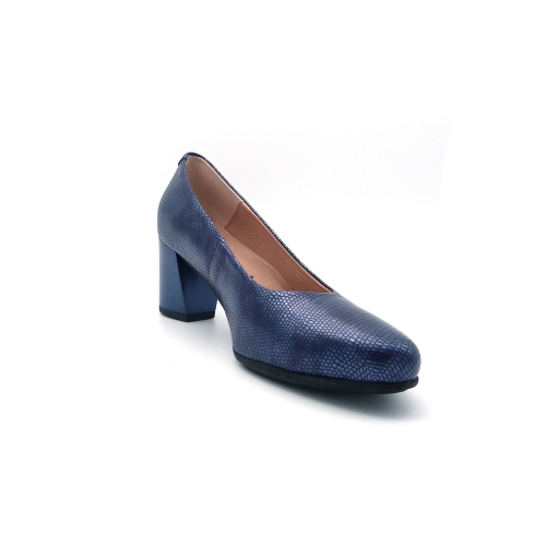 Zapatos de salón para mujer modelo 5551 color azul marino de Pitillos. Realizado en piel grabada imitación serpiente con forro interior suave. Piso es de goma muy flexible y antideslizante. Ideal para el día a día. Con tacón de 4,5 cm. de altura en el mismo tono.