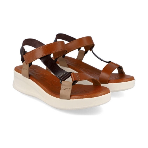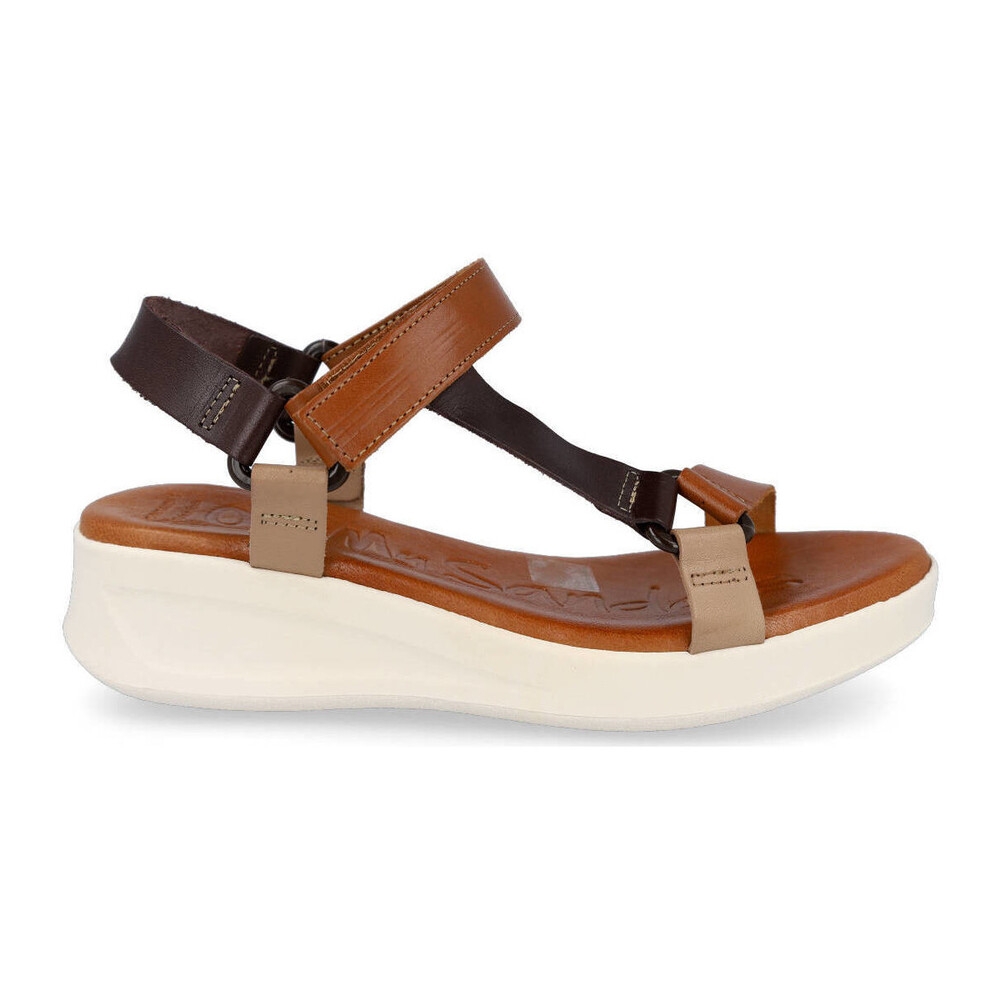 Sandalias de mujer modelo 4939 color marrón de la marca Oh my Sandals. Estas sandalias de piso deportivo con una ligera cuña para mejorar la comodidad cuenta con un cierre de gancho bucle. Un modelo moderno y fresco para un verano apasionante.
